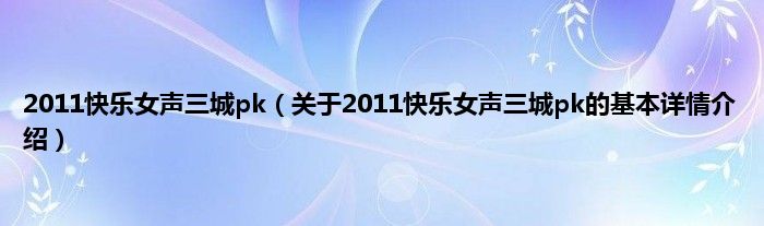 本文关于2011快乐女声三城pk的基本详情介绍就讲解完毕,希望对大家有所帮助。