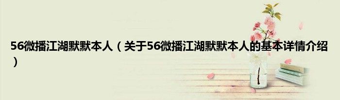 本文关于56微播江湖默默本人的基本详情介绍就讲解完毕,希望对大家有所帮助。