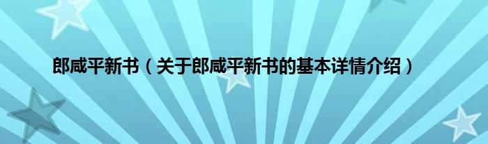 本文关于郎咸平新书的基本详情介绍就讲解完毕,希望对大家有所帮助。
