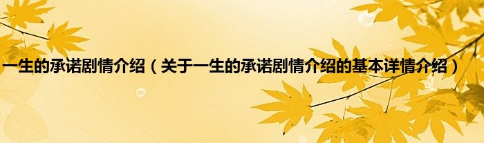 本文关于一生的承诺剧情介绍的基本详情介绍就讲解完毕,希望对大家有所帮助。
