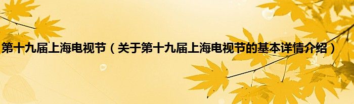 本文关于第十九届上海电视节的基本详情介绍就讲解完毕,希望对大家有所帮助。