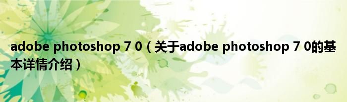 本文关于adobe photoshop 7 0的基本详情介绍就讲解完毕,希望对大家有所帮助。