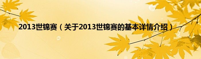 本文关于2013世锦赛的基本详情介绍就讲解完毕,希望对大家有所帮助。
