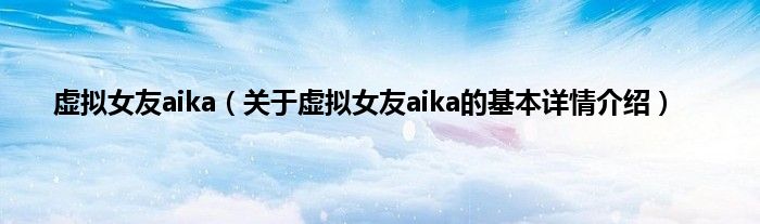 本文关于虚拟女友aika的基本详情介绍就讲解完毕,希望对大家有所帮助。