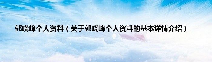 本文关于郭晓峰个人资料的基本详情介绍就讲解完毕,希望对大家有所帮助。