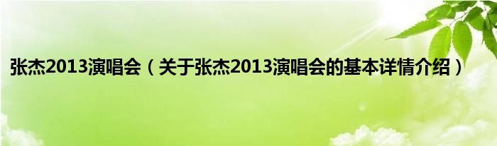 本文关于张杰2013演唱会的基本详情介绍就讲解完毕,希望对大家有所帮助。