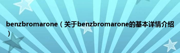 本文关于benzbromarone的基本详情介绍就讲解完毕,希望对大家有所帮助。