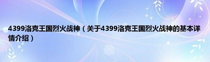 本文关于4399洛克王国烈火战神的基本详情介绍就讲解完毕,希望对大家有所帮助。