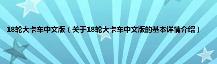 本文关于18轮大卡车中文版的基本详情介绍就讲解完毕,希望对大家有所帮助。