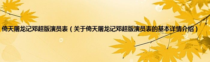本文关于倚天屠龙记邓超版演员表的基本详情介绍就讲解完毕,希望对大家有所帮助。