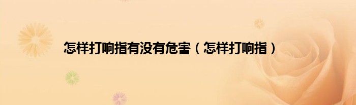 大家好,小问来为大家解答以上问题。怎样打响指有没有危害,怎样打响指这个很多人还不知道,现在让我们一起来看看吧!