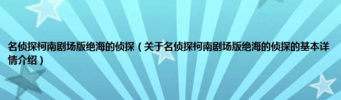 本文关于名侦探柯南剧场版绝海的侦探的基本详情介绍就讲解完毕,希望对大家有所帮助。