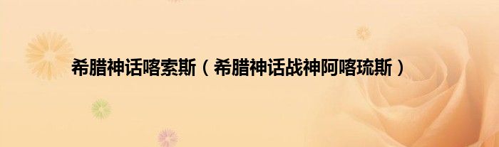 大家好,小问来为大家解答以上问题。希腊神话喀索斯,希腊神话战神阿喀琉斯这个很多人还不知道,现在让我们一起来看看吧!