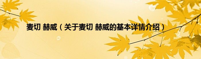 本文关于麦切 赫威的基本详情介绍就讲解完毕,希望对大家有所帮助。