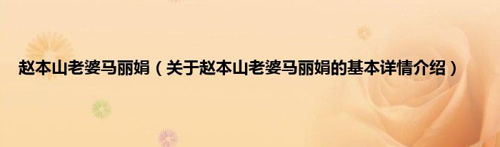 本文关于赵本山老婆马丽娟的基本详情介绍就讲解完毕,希望对大家有所帮助。