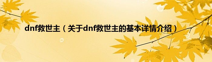 本文关于dnf救世主的基本详情介绍就讲解完毕,希望对大家有所帮助。