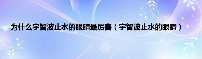 以上就是【为什么宇智波止水的眼睛最厉害,宇智波止水的眼睛】相关内容。