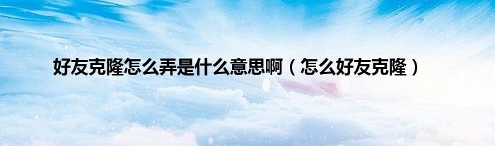 大家好,小问来为大家解答以上问题。好友克隆怎么弄是什么意思啊,怎么好友克隆这个很多人还不知道,现在让我们一起来看看吧!