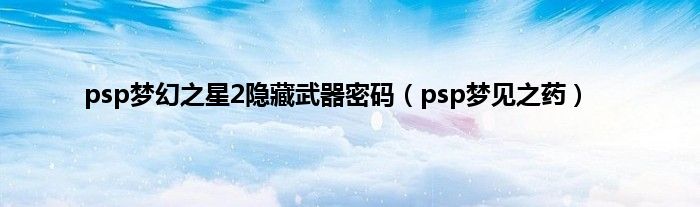 大家好,小问来为大家解答以上问题。psp梦幻之星2隐藏武器密码,psp梦见之药这个很多人还不知道,现在让我们一起来看看吧!
