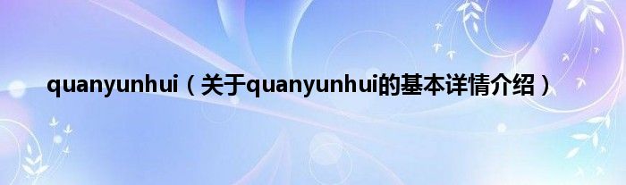本文关于quanyunhui的基本详情介绍就讲解完毕,希望对大家有所帮助。