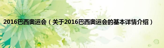 本文关于2016巴西奥运会的基本详情介绍就讲解完毕,希望对大家有所帮助。