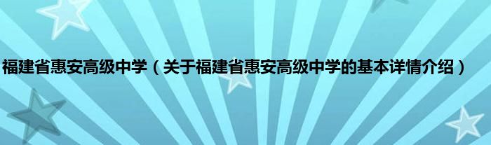 本文关于福建省惠安高级中学的基本详情介绍就讲解完毕,希望对大家有所帮助。