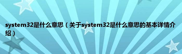 本文关于system32是什么意思的基本详情介绍就讲解完毕,希望对大家有所帮助。