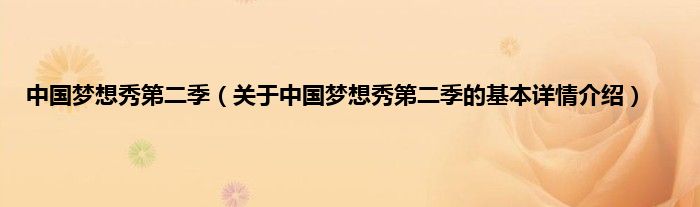 本文关于中国梦想秀第二季的基本详情介绍就讲解完毕,希望对大家有所帮助。