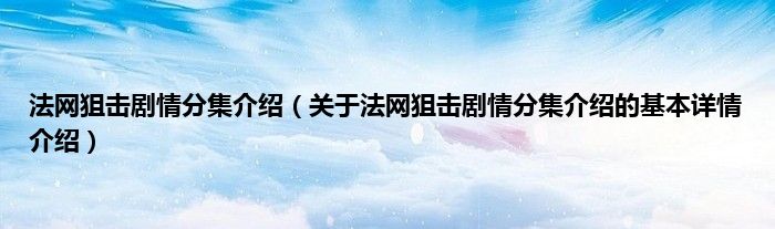 本文关于法网狙击剧情分集介绍的基本详情介绍就讲解完毕,希望对大家有所帮助。