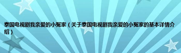 本文关于泰国电视剧我亲爱的小冤家的基本详情介绍就讲解完毕,希望对大家有所帮助。