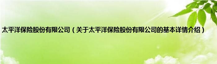 本文关于太平洋保险股份有限公司的基本详情介绍就讲解完毕,希望对大家有所帮助。