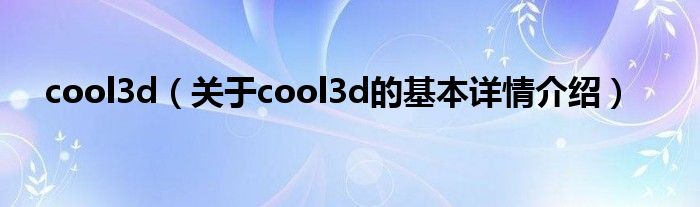 本文关于cool3d的基本详情介绍就讲解完毕,希望对大家有所帮助。