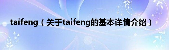 本文关于taifeng的基本详情介绍就讲解完毕,希望对大家有所帮助。