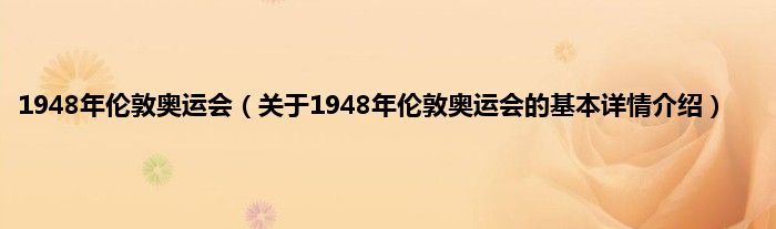 本文关于1948年伦敦奥运会的基本详情介绍就讲解完毕,希望对大家有所帮助。