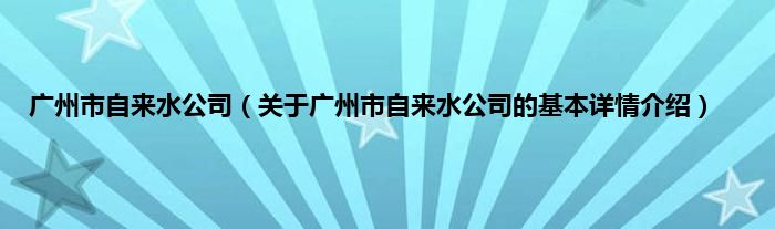本文关于广州市自来水公司的基本详情介绍就讲解完毕,希望对大家有所帮助。
