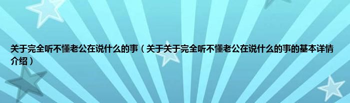 本文关于关于完全听不懂老公在说什么的事的基本详情介绍就讲解完毕,希望对大家有所帮助。