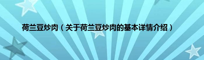 本文关于荷兰豆炒肉的基本详情介绍就讲解完毕,希望对大家有所帮助。