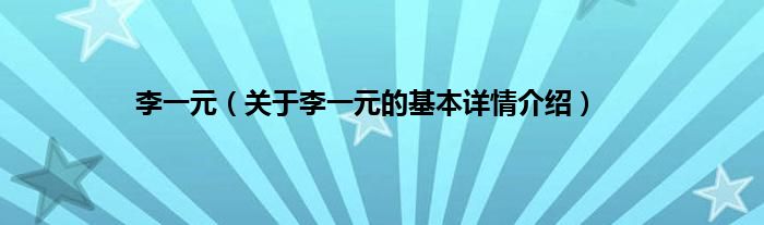 本文关于李一元的基本详情介绍就讲解完毕,希望对大家有所帮助。