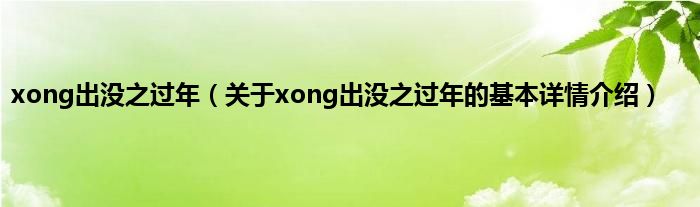 本文关于xong出没之过年的基本详情介绍就讲解完毕,希望对大家有所帮助。