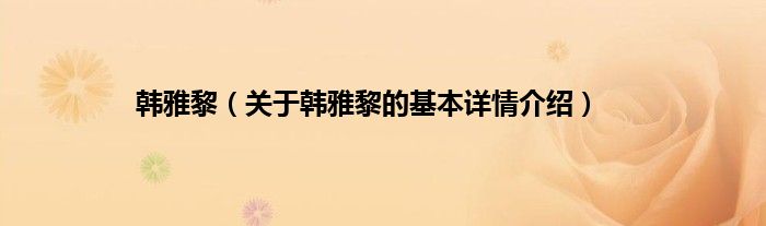 本文关于韩雅黎的基本详情介绍就讲解完毕,希望对大家有所帮助。