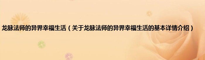 本文关于龙脉法师的异界幸福生活的基本详情介绍就讲解完毕,希望对大家有所帮助。