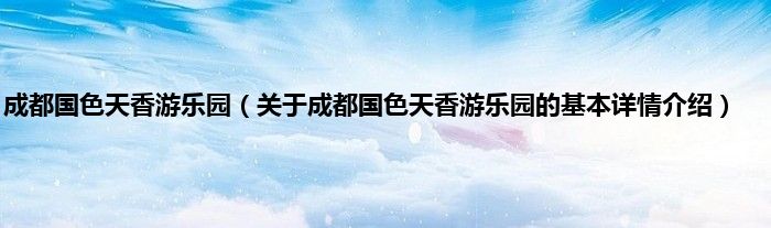 本文关于成都国色天香游乐园的基本详情介绍就讲解完毕,希望对大家有所帮助。