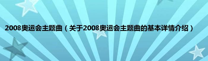 本文关于2008奥运会主题曲的基本详情介绍就讲解完毕,希望对大家有所帮助。