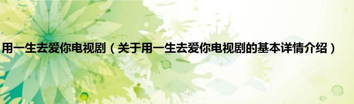 本文关于用一生去爱你电视剧的基本详情介绍就讲解完毕,希望对大家有所帮助。