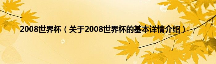 本文关于2008世界杯的基本详情介绍就讲解完毕,希望对大家有所帮助。