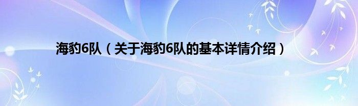 本文关于海豹6队的基本详情介绍就讲解完毕,希望对大家有所帮助。