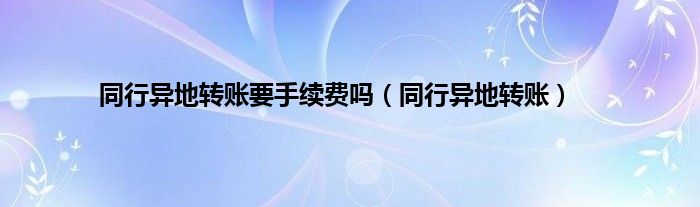 以上就是【同行异地转账要手续费吗,同行异地转账】相关内容。