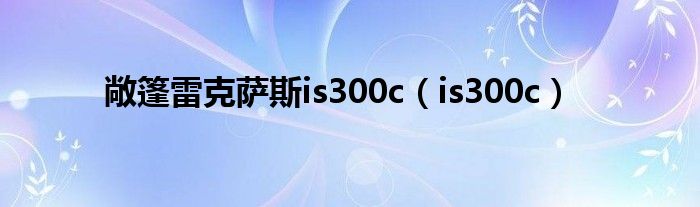 大家好,小问来为大家解答以上问题。敞篷雷克萨斯is300c,is300c这个很多人还不知道,现在让我们一起来看看吧!
