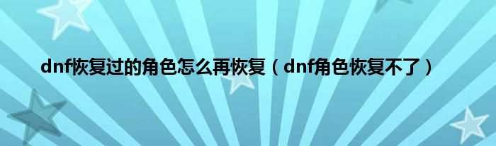 以上就是【dnf恢复过的角色怎么再恢复,dnf角色恢复不了】相关内容。