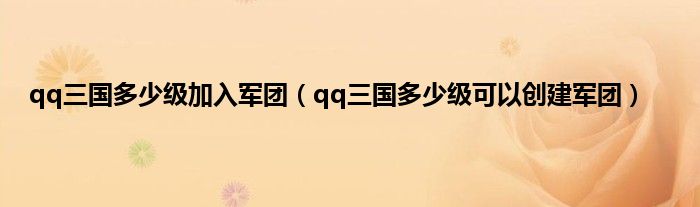 大家好,小问来为大家解答以上问题。qq三国多少级加入军团,qq三国多少级可以创建军团这个很多人还不知道,现在让我们一起来看看吧!